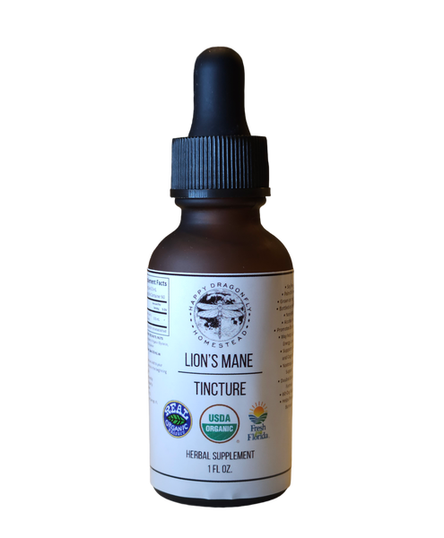 Our USDA Organic Lion’s Mane Mushroom Extract is made with Lion’s Mane mushrooms grown right here at Happy Dragonfly Homestead. We grow, process, and bottle our extract on the farm in our certified on-site processing facility, giving you a product rooted in transparency, quality, and careful handling from start to finish.